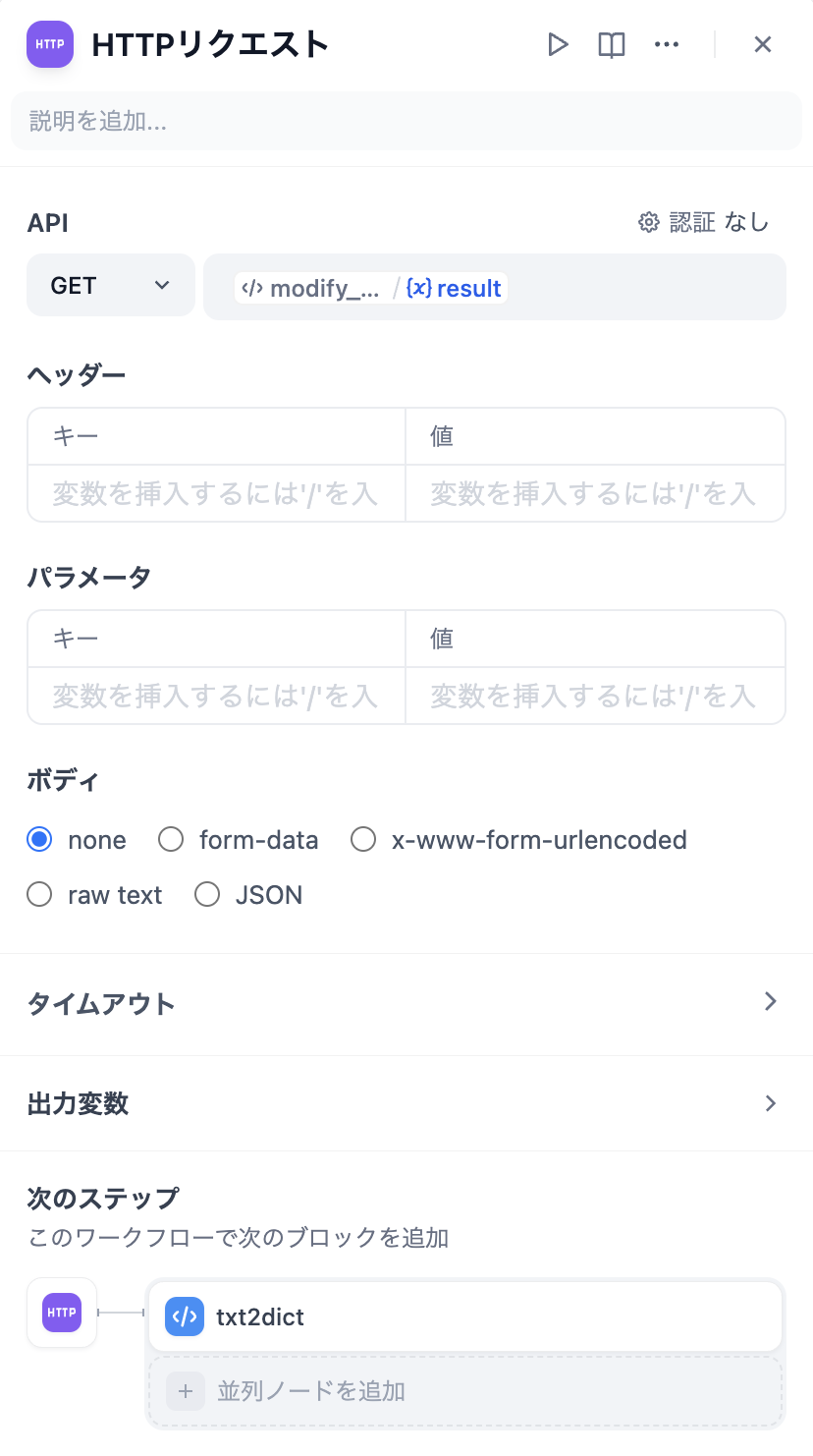 - 2 で取得した内容はテキストであるので、これを変数セットのリストに変換する
