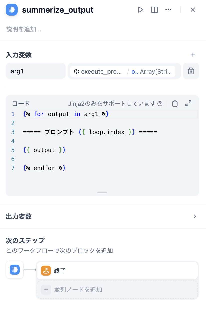 - イテレーションの中で、1 セットずつプロンプトを実行する